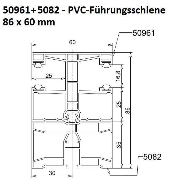 EXTE 50961+5082 – PVC-MAXI-Führungsschiene 86 x 60 mm
